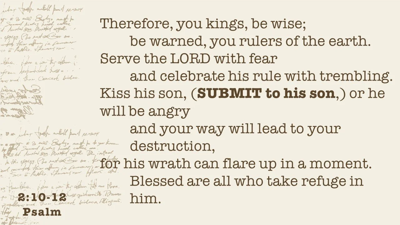 At some point in our lives, we will all experience some kind of turmoil. The good news of Psalm 2 is that God can turn that turmoil into a blessing. One of our Pastors, Jeff Conner, read from Psalm 2 to show us how we can get through turmoil and see the blessing of God on the other side.