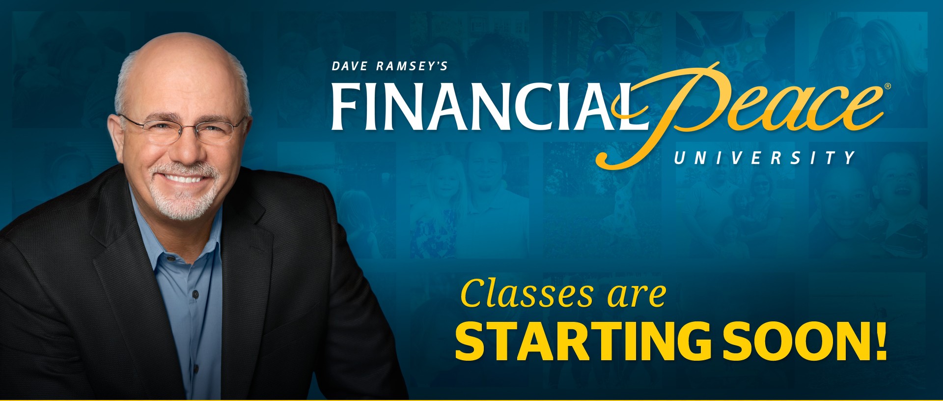 What if you knew where all of your money was going each month? What if you were debt-free, investing and making wise spending decisions? With Dave Ramsey’s class Financial Peace University, you CAN take control of your money and start planning for your future. We’re offering FPU beginning September 24. The cost for the class is $93 plus shipping for your materials kit. REGISTER HERE TO START YOUR JOURNEY TO FINANCIAL FREEDOM!