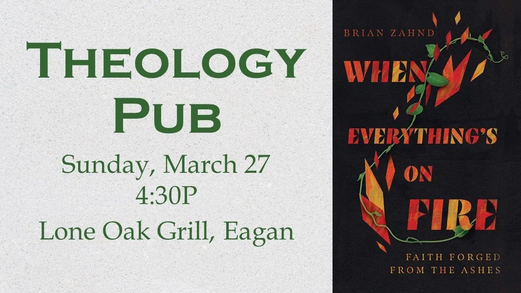 Theology Pub is a monthly book club for those who want to read a theologically oriented book and get together to discuss it at a local pub. Our March selection is, “When Everything’s on Fire” by Brian Zahnd. We will meet at Lone Oak Grill on Sunday, March 27 at 4:30p. Please sign up at the Welcome Center so we know you’re coming.